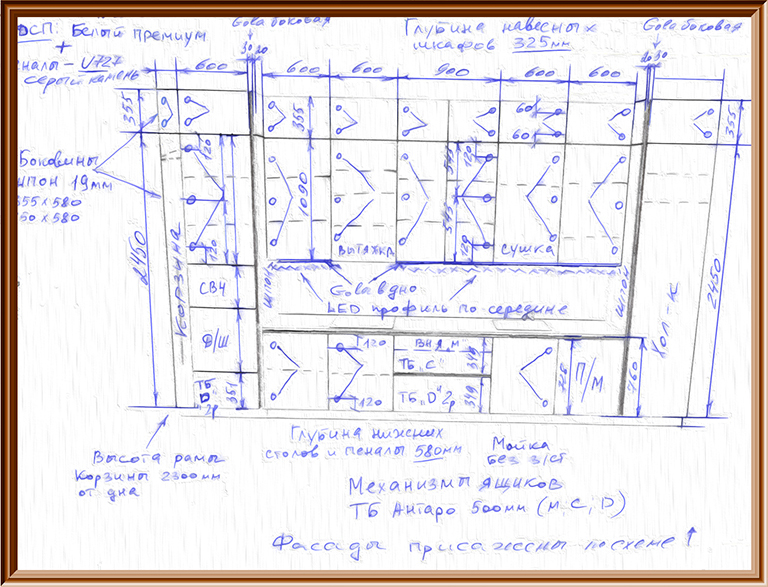 Проект в Базис-Мебельщике. Не забудьте согласовать с нашим технологом технические тонкости: допуски, подрезка кромки (чтоб не исправлять потом на всех деталях), минимальные радиусы и максимальные размеры детали для обработки. Это, кстати и красивых эскизов касается.
